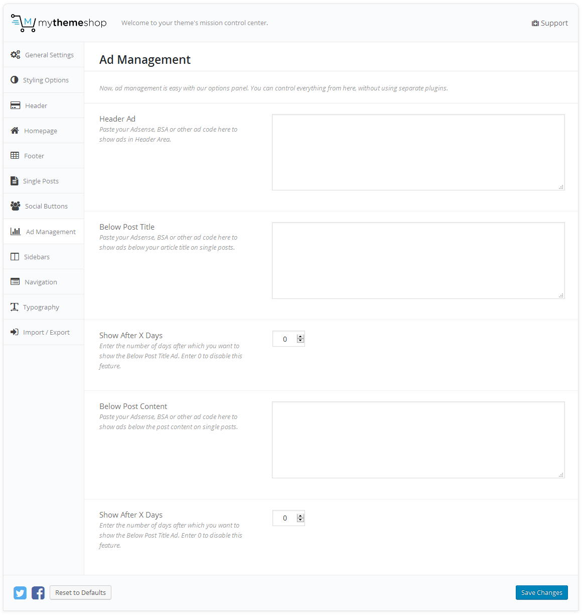 Sidebar Settings